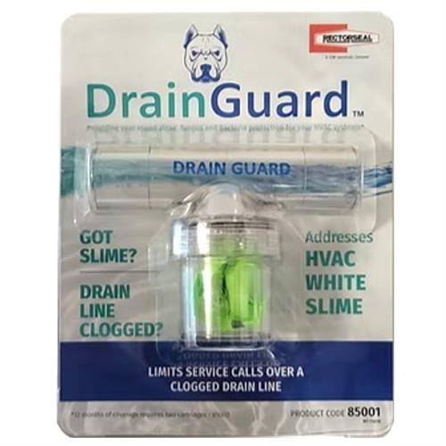 Drain Guard was developed due to the alarming number of nuisance air-conditioning service calls for clogged drain lines. Drain Guard is Patent Pending, Laboratory Tested and Specifically Designed for Drain Guard.