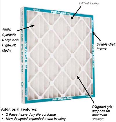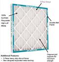 Our MERV8 Pleated Filters are designed for residential, commercial and industrial applications having light to medium dust loading conditions. Featuring a filter medium that is more efficient and ecologically friendly, this medium achieves MERV8 efficiency with low resistance to airflow. The frame is made from the highest wet-strength recyclable beverage board material available, allowing it to hold up under nearly any conditions.