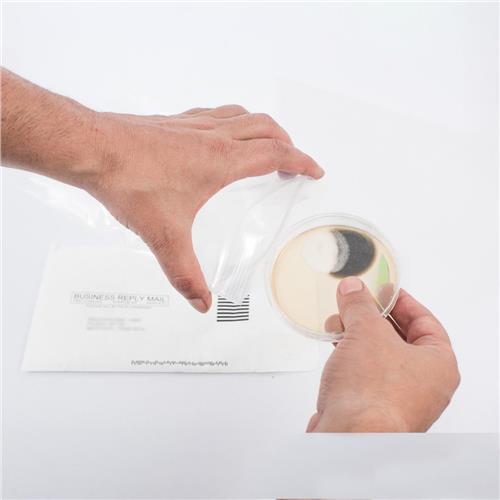 Pour one vial of growth gel in to each of the respective petri dishes. Replace their lids and let solidify for 1/2 hour. Be careful not to touch the inside of the dishes prior to use or the liquid gel itself...this can lead to contamination. Remove the lids again , prior to sampling. It is recommended that one dish be placed outside with the lid off for an hour out of the sun so it can be used as a control sampling. After the hour is up , put the lid on the dish , tape it shut and label it with a marker for location.