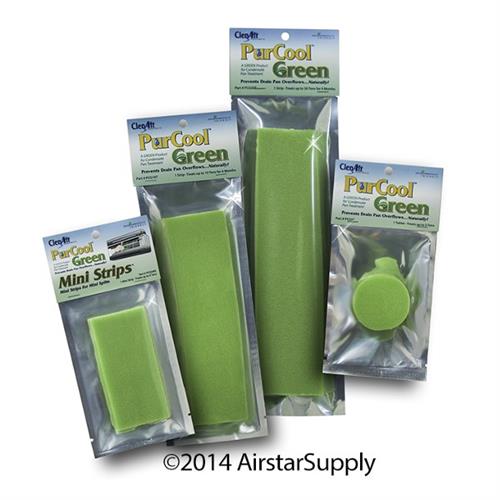 ClenAir PurCool® Green Pan Tablets and Mini Strips are the first environmentally friendly air conditioner condensate drain pan treatment product. Until now, A/C condensate drain treatment products utilized biocides and other harsh chemicals to keep the drain pan and lines clean and flowing. Purcool Green utilizes new, natural plant and vegetable based dispersing and suspending technology to SAFELY keep condensate drain pans clean and free flowing.
