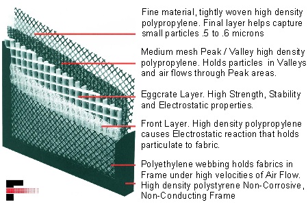 Designed for Residential , Commercial and Industrial applications having light to medium duty dust loading conditions. Utilizing a special combination of media to electrostatically charge airborne particles , this friction of air passing causes a natural electrostatic attraction to occur.
