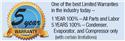 Manufacturer's Warranty: 5-Year Limited Warranty including 1-Year Parts & Labor & 5 Years on the Sealed System (Condenser , Evaporator and Compressor).